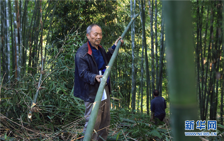 当地村民砍伐竹材一天的劳务收入通常在200元以上。新华网 卢志佳 摄
