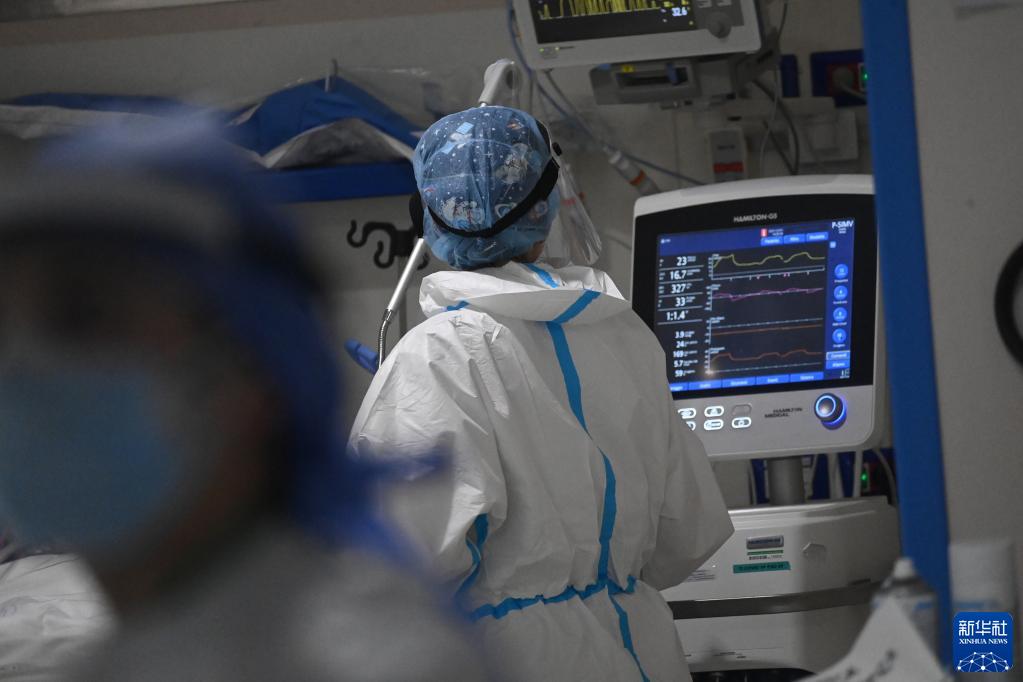 12月3日,医务人员在意大利博洛尼亚一家医院的新冠隔离区对患者进行治疗。