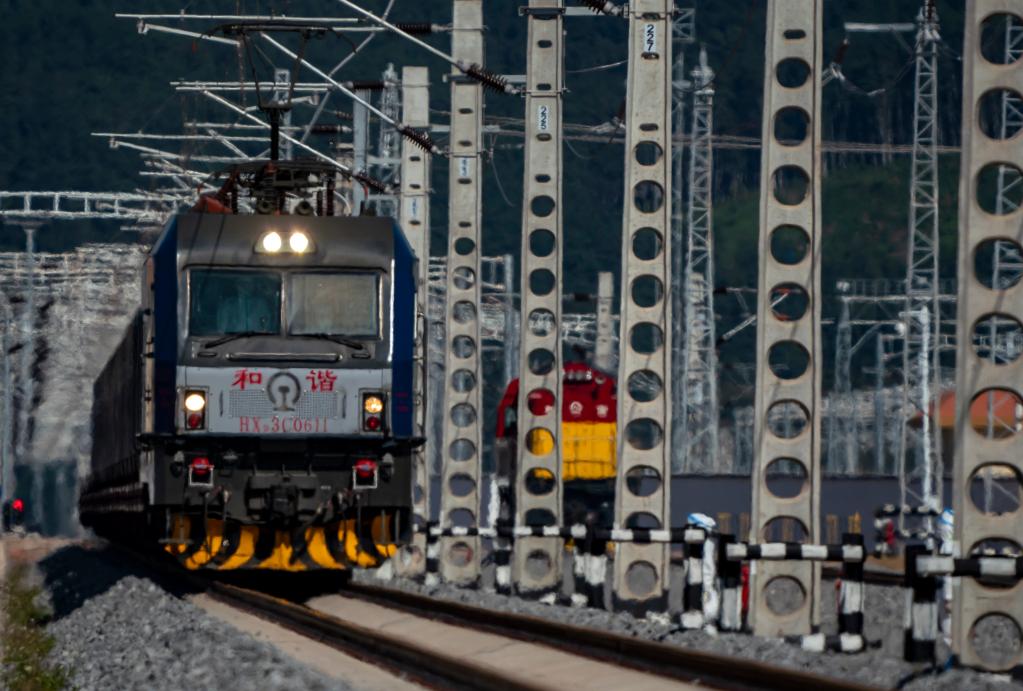 12月4日,货物列车即将驶入位于中老边境的友谊隧道。当日清晨,从昆明站始发、满载货物的国际货物列车抵达磨憨铁路口岸,随后这趟列车将穿过友谊隧道前往老挝。这是中老铁路开通后开行的首趟国际货物列车。(新华社记者江文耀摄)