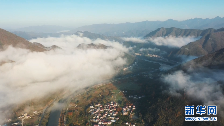 地处皖南的安徽省池州市石台县白石岭的山间肆意流淌的云海中,粉墙黛瓦的徽派民居若隐若现,宛如一幅恬淡自然的冬日画卷。