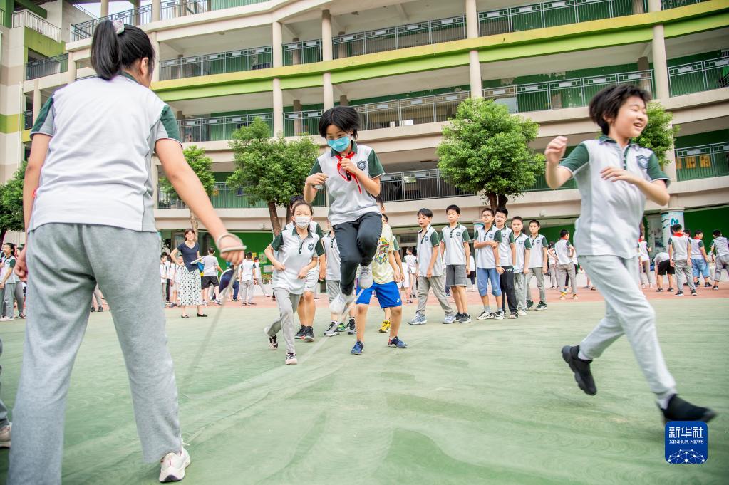 湖北省武昌水果湖第一小学的学生在操场上跳绳锻炼(9月1日摄)。新华社发(伍志尊 摄)