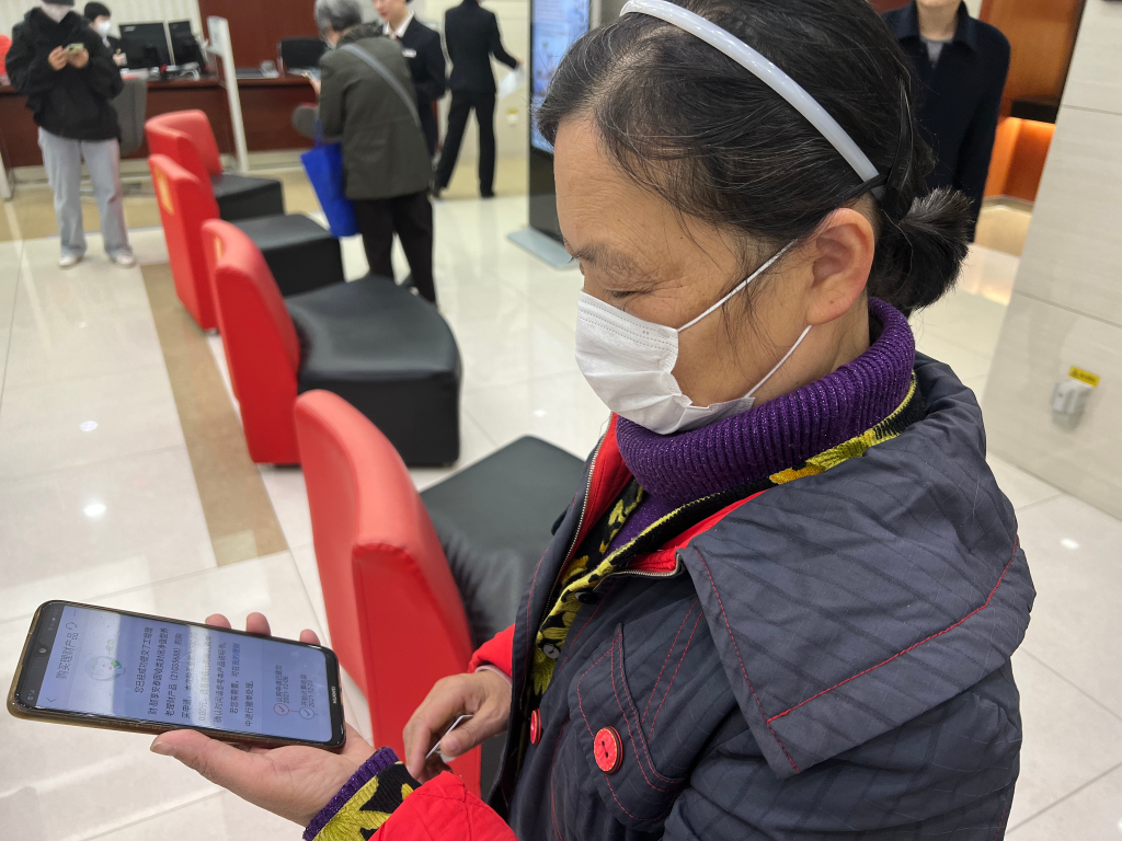6日上午,63岁武汉市民童女士在工行武汉分行水果湖支行通过手机银行认购养老理财试点产品。新华社记者 邓楠 摄