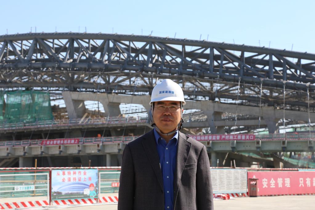 图为李久林在国家速滑馆施工现场。(受访者供图)