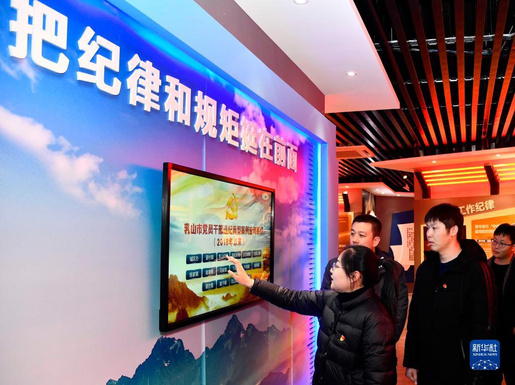 山东省乳山市党员干部在乳山市廉政警示教育基地接受廉政警示教育(2019年12月13日摄)。新华社记者 郭绪雷 摄