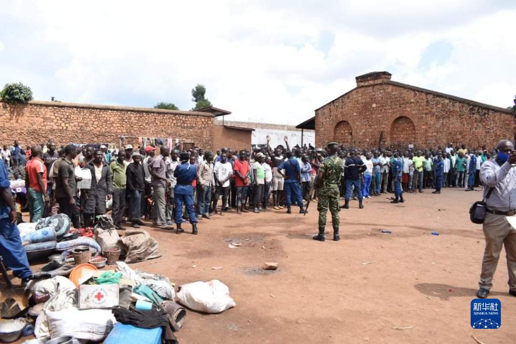 12月7日,警察和军人聚集在布隆迪基特加省基特加中心监狱。新华社发