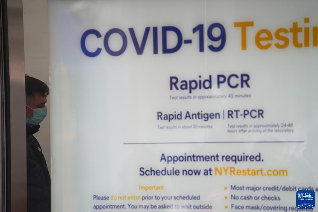 12月7日,一名男子站在美国纽约时报广场的一个新冠检测点内。