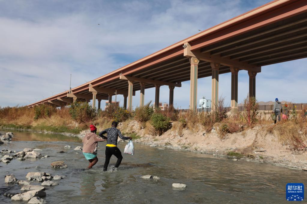 12月7日在墨西哥华雷斯城拍摄的照片显示,移民试图通过美墨边境的布拉沃河进入美国。