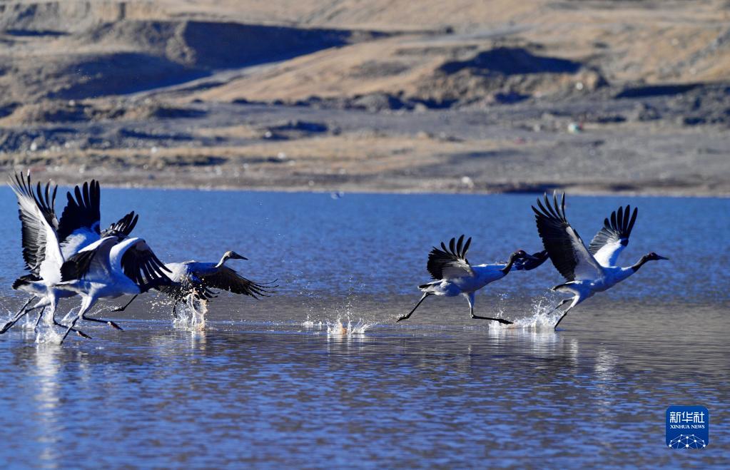 这是在林周县虎头山水库拍摄的黑颈鹤(12月7日摄)。