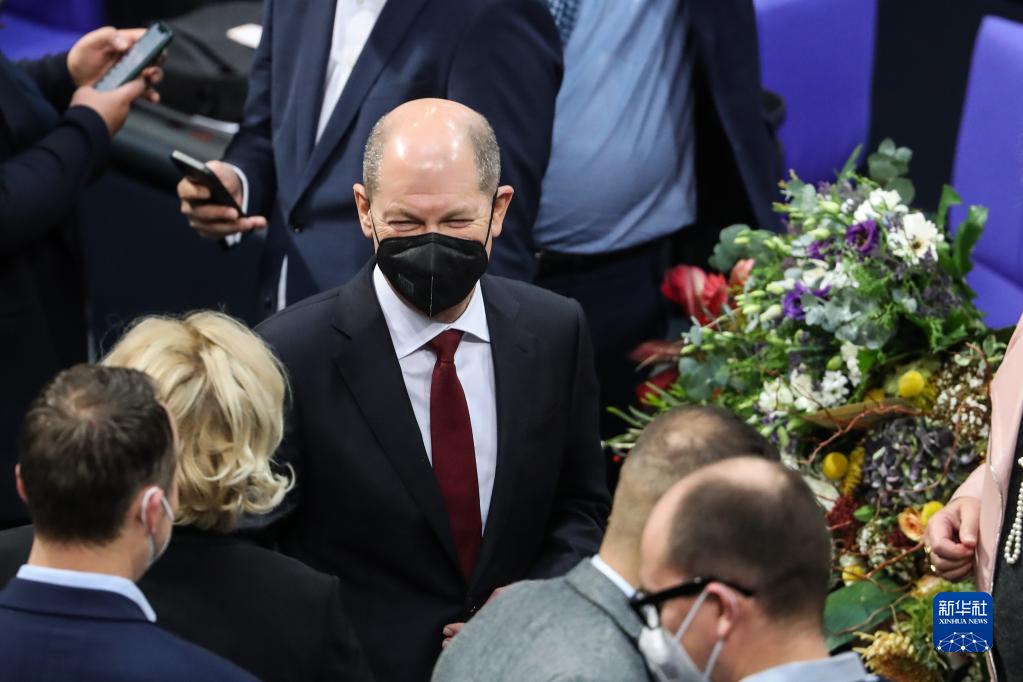 德国联邦议院8日投票选举新总理,来自社会民主党的总理候选人朔尔茨获得395票,高于当选所需票数。随后,朔尔茨前往位于柏林的总统府,接受总统弗兰克-瓦尔特·施泰因迈尔颁发的委任书,并在联邦议院宣誓就职。