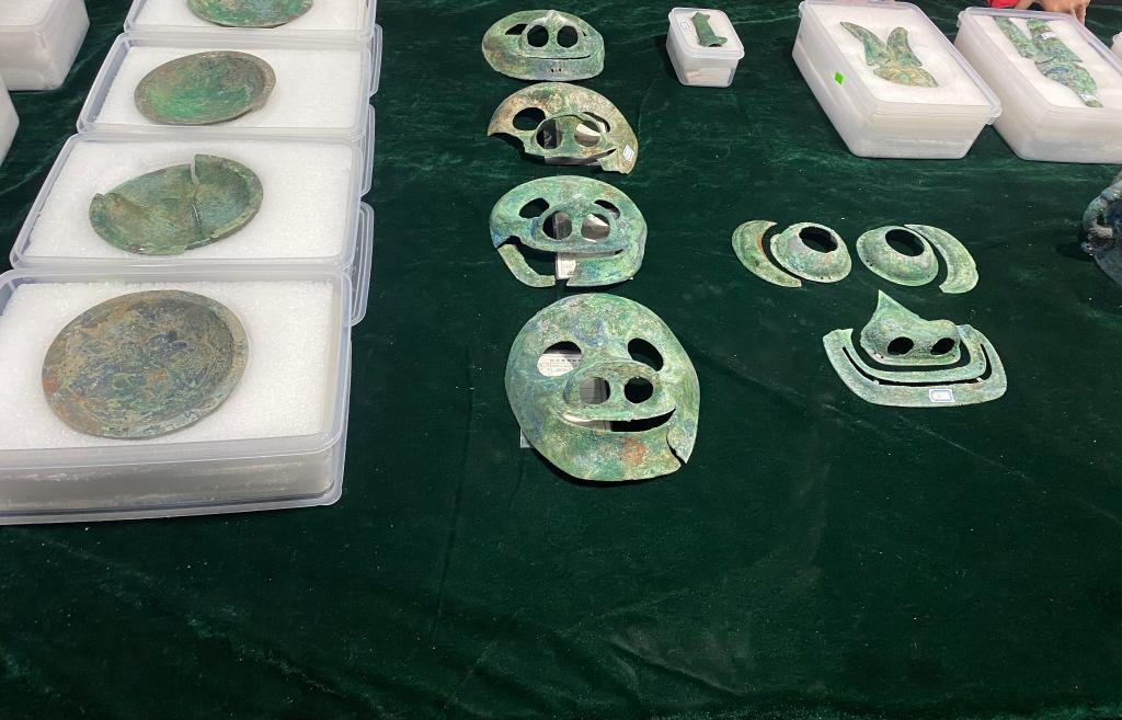 琉璃河遗址出土的青铜面具等文物。新华社记者 罗鑫 摄
