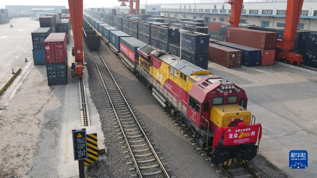 当日,搭载100个标准集装箱的中欧班列从中国铁路上海局集团有限公司合肥货运中心合肥北站物流基地驶出,开往俄罗斯沃尔西诺。此趟列车的发运,标志着合肥中欧班列自2014年开行以来,累计开行达到2000列。