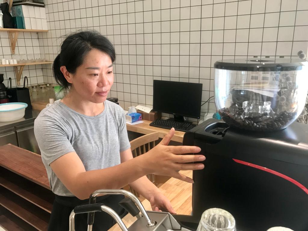 欧晓娟在给客人泡咖啡。新华社记者 高搏扬 摄