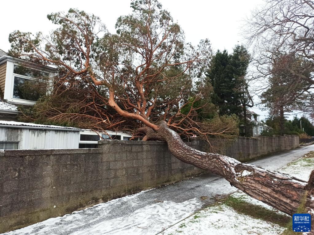 12月8日,在英国苏格兰北部城市阿伯丁,大树被吹倒。