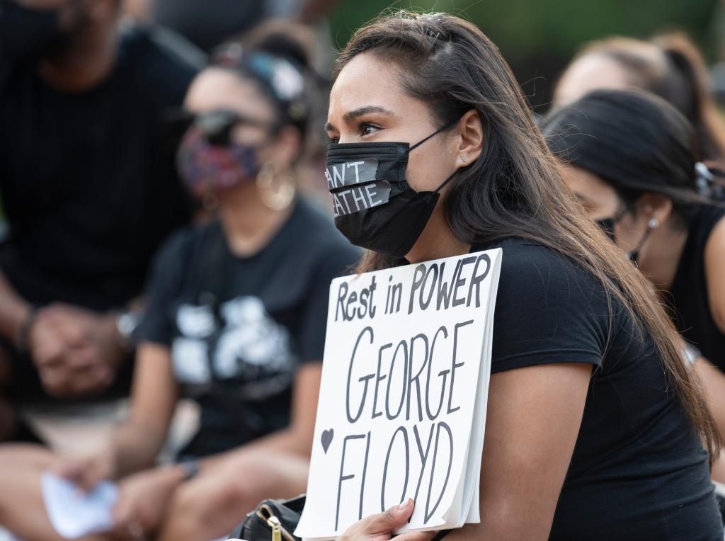 2021年5月25日,人们在美国华盛顿白宫附近参加悼念弗洛伊德的集会。当日是非洲裔美国人乔治·弗洛伊德遭明尼苏达州白人警察“跪颈”执法致死一周年,美国多地举行悼念活动。(新华社记者刘杰摄)