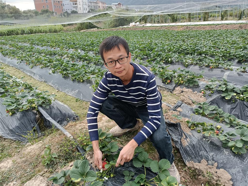 台胞“新农人”刘元楷在福清镜洋镇的绿生园生态农场中。(受访者供图)