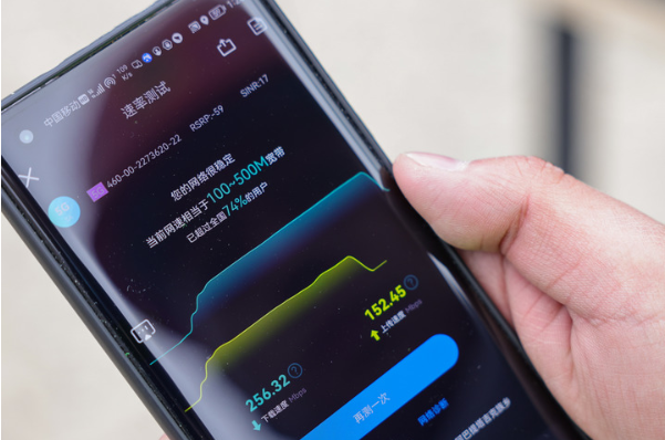 高原5G基站开通现场,设备维护人员测试5G网络速度。(新华社记者丁磊 摄)