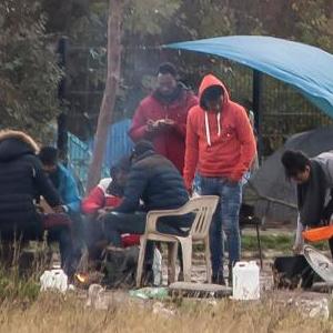 11月26日在法国北部加来港附近拍摄的非法移民。新华社发