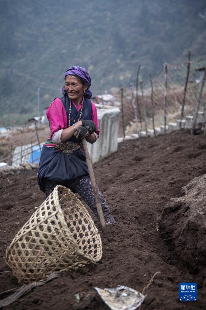 陈塘镇夏尔巴妇女在田地里劳动(11月26日摄)。