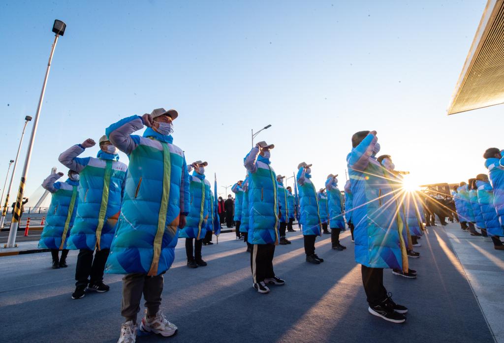 北京2022年冬奥会和冬残奥会张家口赛区志愿者出征仪式。新华社记者 骆学峰 摄