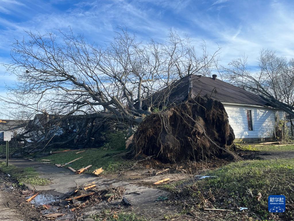 12月11日,在美国肯塔基州梅菲尔德,一棵大树被龙卷风连根拔起。新华社发(卡萝蜜娜·桑切斯摄)
