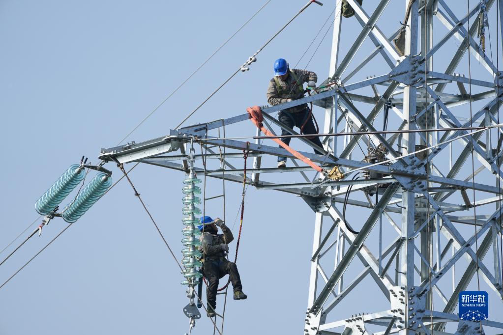 12月9日,安徽送变电工程有限公司施工人员在岳西县五河镇司空-仙河110千伏输电线路工程现场施工。