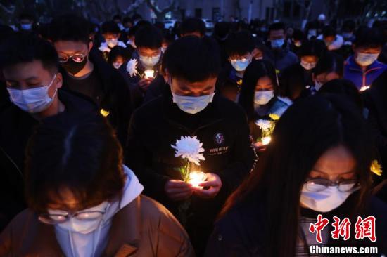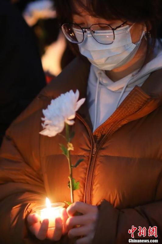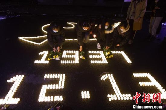 师生们手捧蜡烛和鲜花,祭奠84年前惨遭杀害的30万遇难同胞。