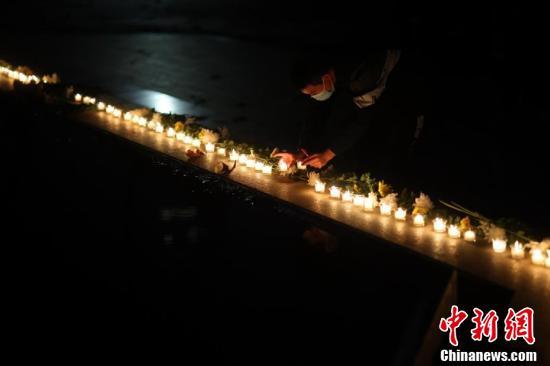 大学生们摆放蜡烛祭奠遇难同胞。