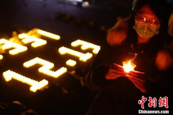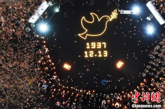 12月12日晚,在侵华日军南京大屠杀死难者国家公祭日来临之际,南京东南大学师生点亮烛光,摆放成“1937”“12·13”“和平鸽”字样和图案,通过诗歌朗诵、献花等形式缅怀遇难同胞,铭记历史,祈愿和平。