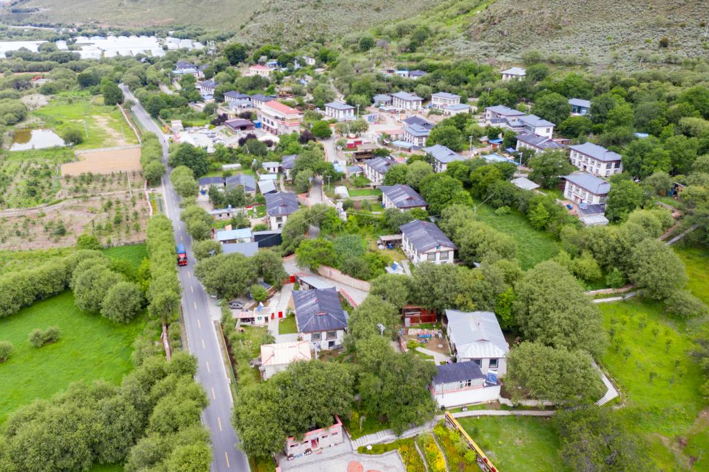 俯瞰林芝市巴宜区林芝镇嘎拉村(7月21日摄,无人机照片)。新华社记者普布扎西摄
