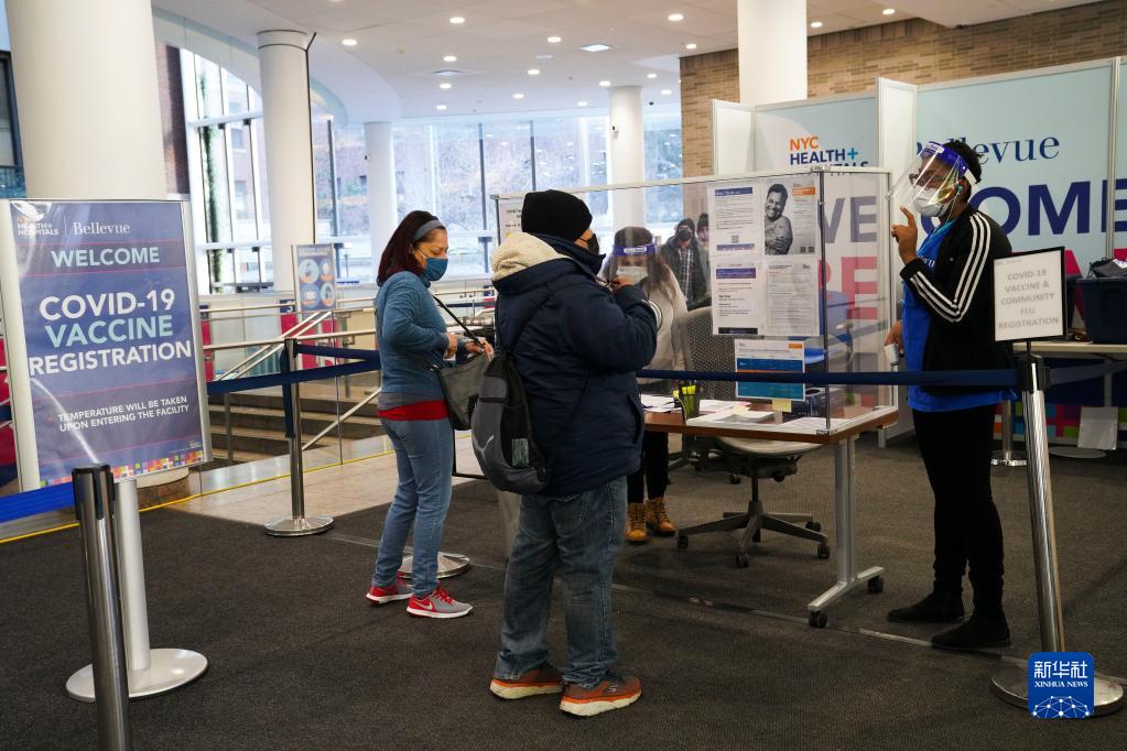12月13日,人们在美国纽约一家医院登记接种新冠疫苗。