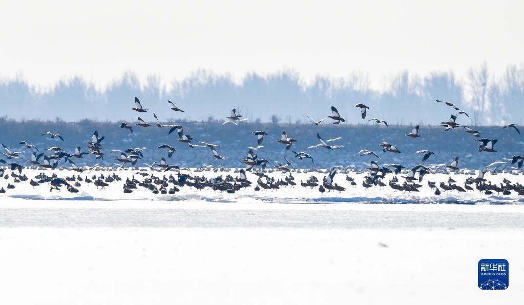 正值冬日,在呼和浩特土默特左旗海流水库,四五千只赤麻鸭栖息在此,为海流水库增添了勃勃生机。