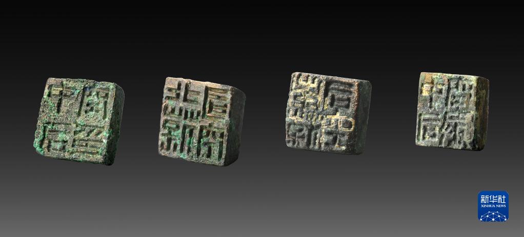江村大墓外藏坑出土的印章(2020年5月7日摄)。新华社发
