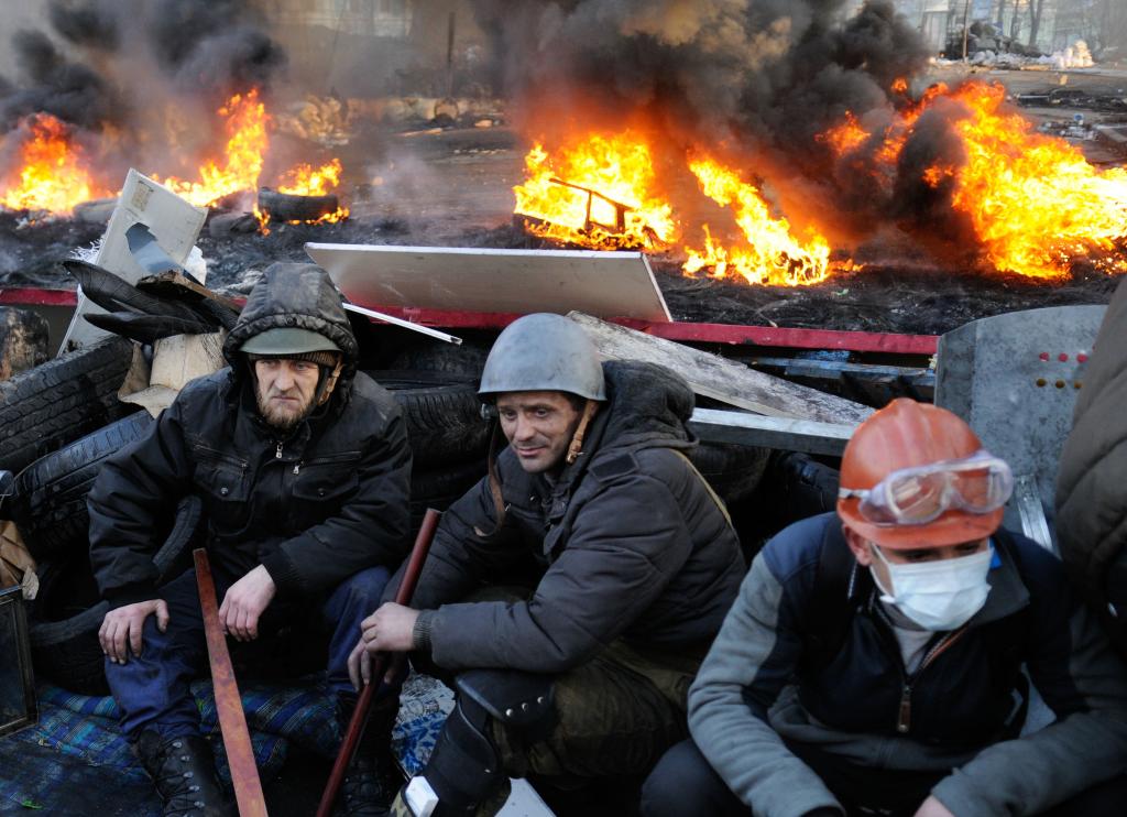 2014年2月20日,在乌克兰首都基辅独立广场附近,示威者在冲突过后休息。(新华社记者刘红霞 摄)