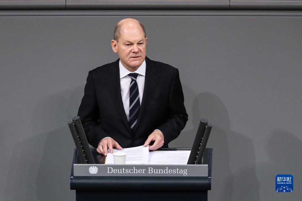 12月15日,在德国首都柏林,德国总理朔尔茨在联邦议院发表上任后首份政府报告。新华社记者 单宇琦 摄