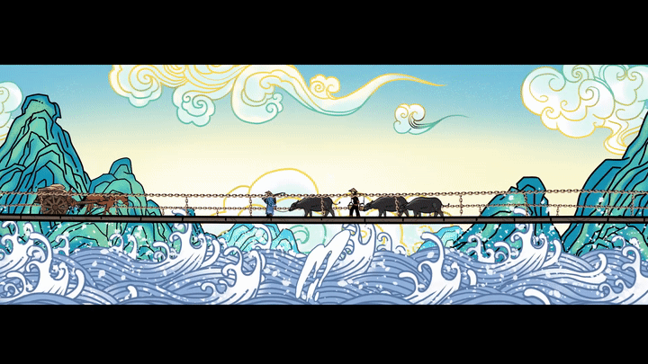 1638年,位于关岭、晴隆交界处,有一座盘江桥。行走桥上,桥下“盘江沸然”,“浑浊如黄河而甚急”,“初以舟渡,多漂溺之患”,桥头题词曰“天堑云航”。