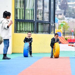 贵州省龙里县第六幼儿园的孩子在做游戏,这里是龙里县冠山街道奋进社区易地扶贫搬迁安置点的配套幼儿园(2020年11月4日摄)。新华社记者 杨文斌 摄