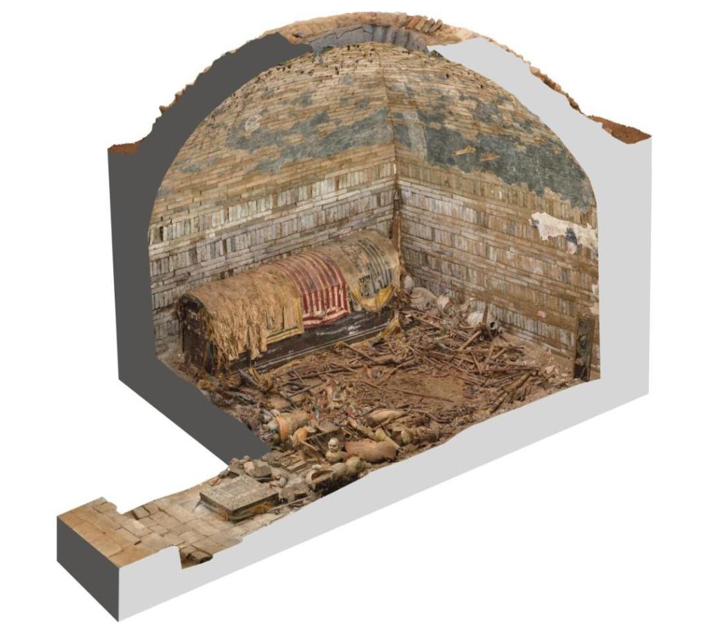 慕容智墓甬道及墓室三维影像图。(甘肃省文物考古研究所供图)