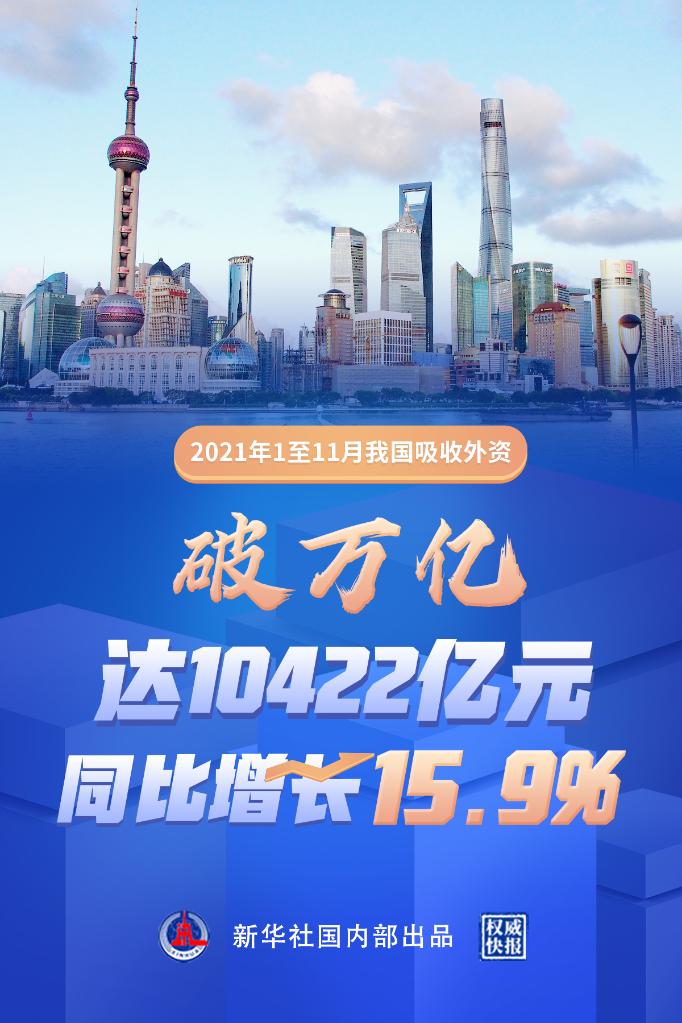 商务部当日发布数据显示,1至11月,我国实际使用外资金额10422亿元人民币,同比增长15.9%。