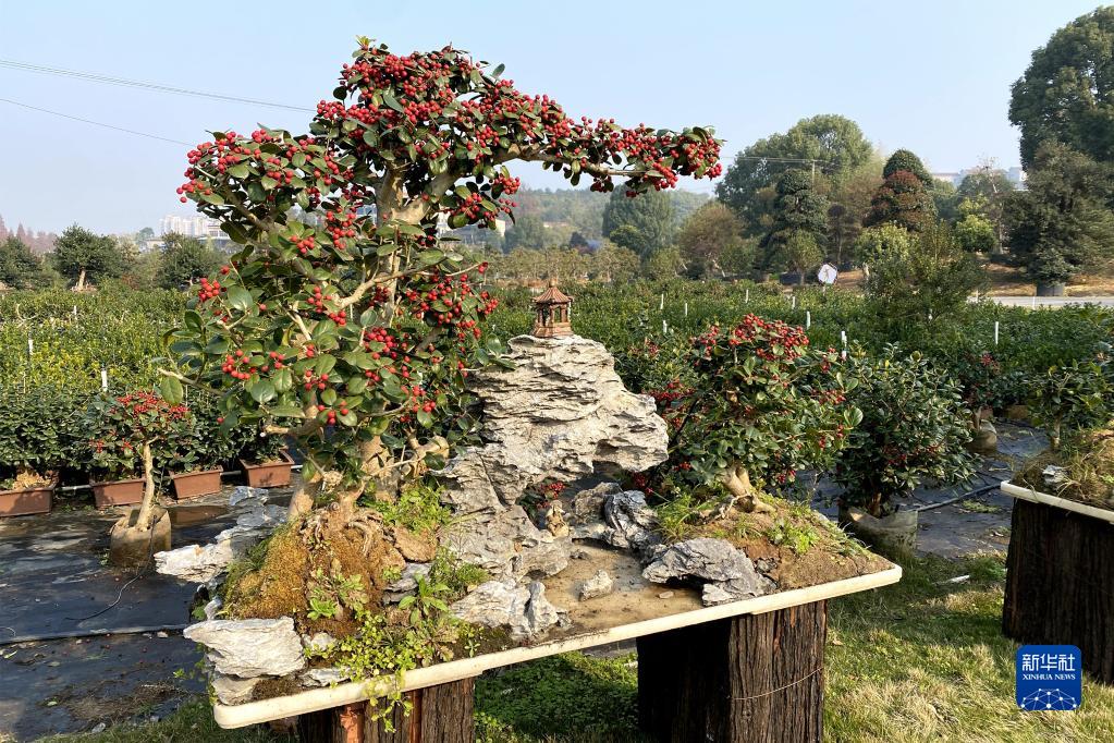 位于长沙市雨花区跳马镇石燕湖村的育景园,是黄笛进利用多年时间精心打造的园林景观。初冬清寒,园林内的珍珠红苗木千姿百态,叶片浓绿光亮,红果点缀枝头,满眼生机勃勃。