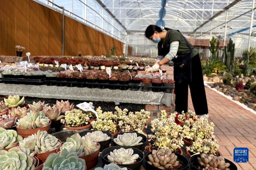 图为跳马镇多肉植物培育基地。 新华社记者 柳王敏 摄