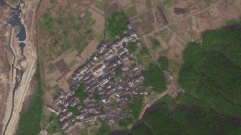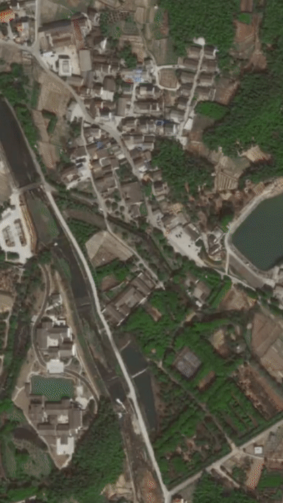 溪水环绕村庄 春风吹拂果香