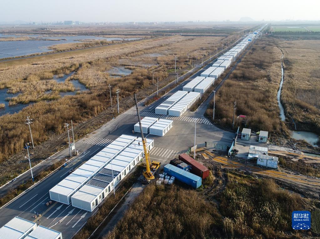 12月17日,中国建筑第三工程局有限公司的工作人员在全力建设绍兴市上虞区盖北镇进港公路隔离点。