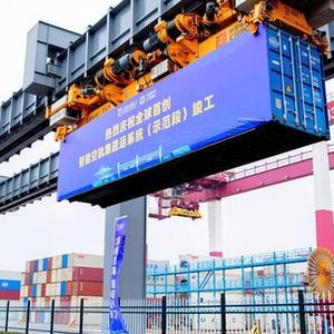 6月29日,全球首创智能空中轨道集疏运系统(示范段)在山东港口青岛港自动化码头竣工投入试运营。新华社发