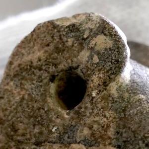 这是苏羊遗址出土的外形似虎头的兽首石雕(12月15日摄)。新华社记者 李安 摄