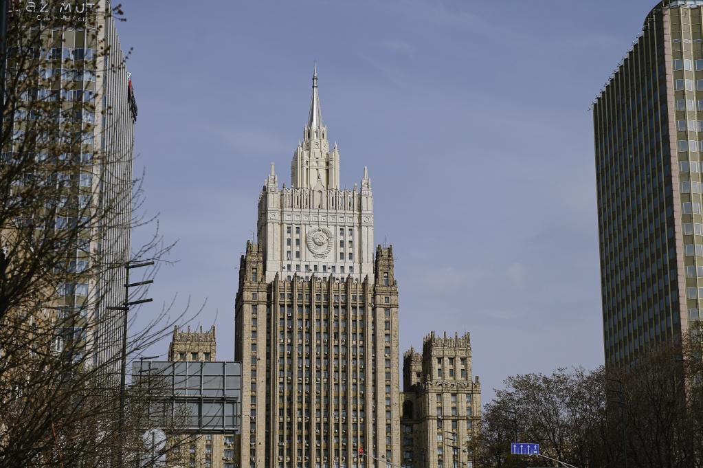 4月16日在俄罗斯首都莫斯科拍摄的俄罗斯外交部大楼。(新华社发,叶甫盖尼·西尼岑 摄)