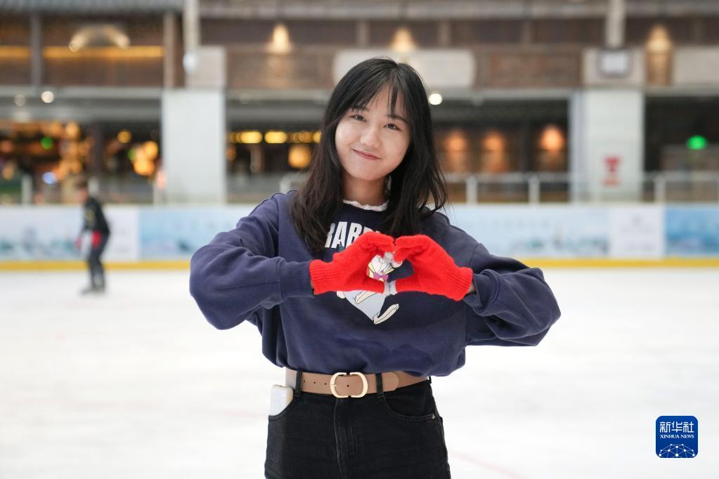清华大学的学生志愿者王梦龄在清华大学“冬奥精神与青年志愿”课程上体验滑冰(12月14日摄)。