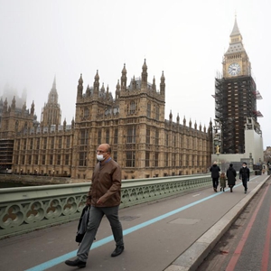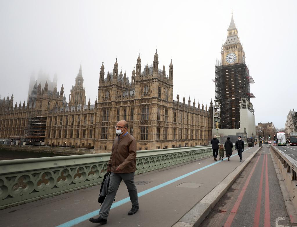 图为12月19日,人们行走在英国伦敦威斯敏斯特桥上。(新华社记者李颖摄)