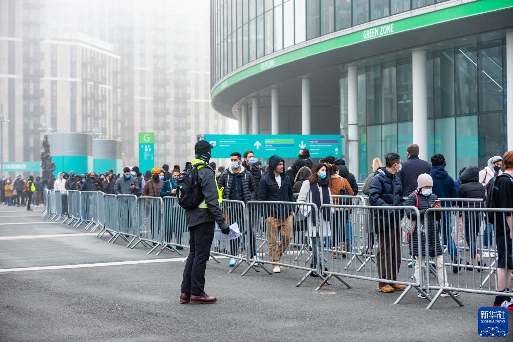 12月19日,人们在英国伦敦的温布利体育场新冠疫苗接种中心外排队等待。