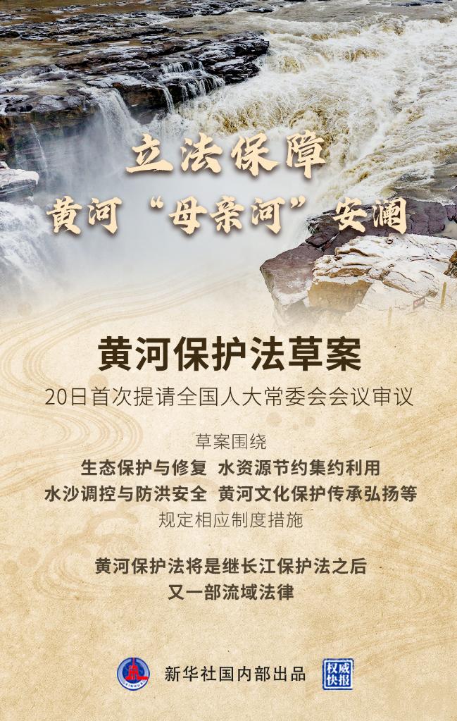 新华社北京12月20日电(记者刘诗平、王悦阳)黄河保护法草案20日首次提请十三届全国人大常委会第三十二次会议审议。黄河保护法将是一部推动黄河流域生态保护和高质量发展的法律,也将是继长江保护法之后我国制定的又一部流域法律。