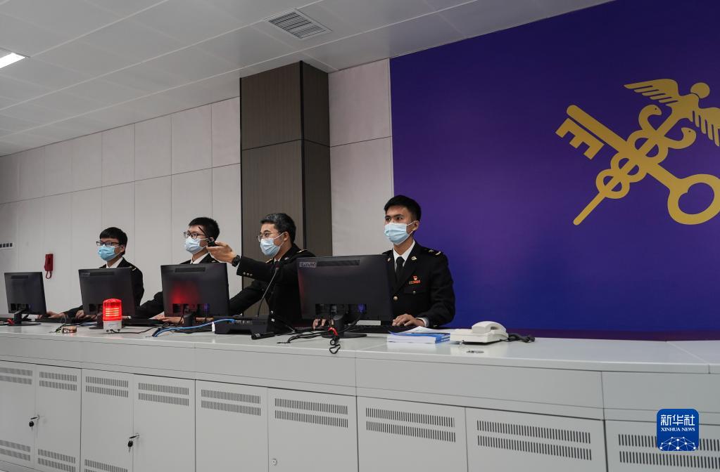 12月20日,在综合保税区监控指挥中心验收现场,海关关员演示操作监控指挥设备。
